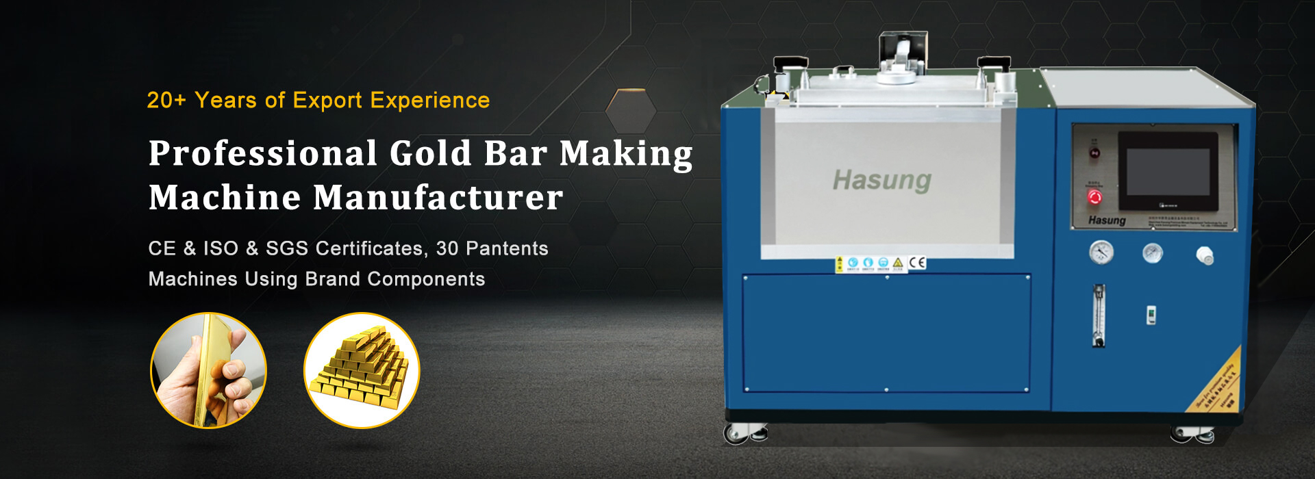 Shenzhen Hasung Precious Metals Equipment Co., Ltd. is a mechanical engineering company. Our strong knowledge in vacuum casting technology further enables us to serve industrial customers to cast high-alloyed steel, high vacuum-required platinum-rhodium alloy, gold and silver, etc. Our mission is to build the most innovative heating and casting equipment for the precious metal manufacturing and gold jewelry industry, providing customers with the highest reliability in their daily operations and the best quality.